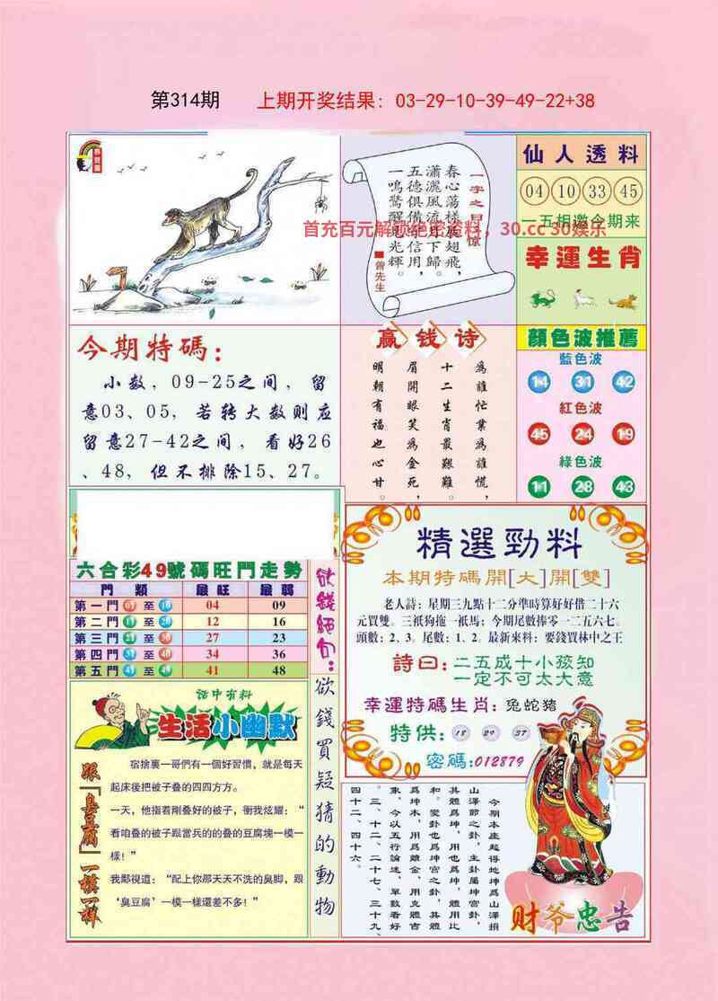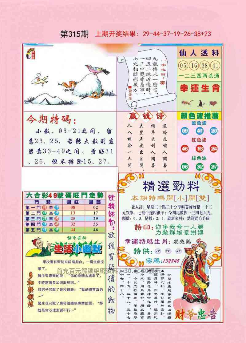 | 314期:🀄天地中特【地肖】开:羊23中 |